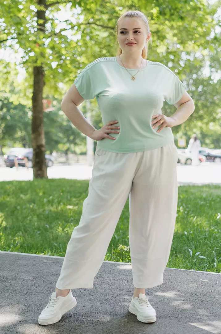 На страницах виртуального каталога интернет-магазина «Пишна Краса» вашему вниманию представлены женские брюки больших размеров (от 50 до 76) разнообразных фасонов и цветов. У нас вы можете купить стильную и качественную одежду, которую можно сочетать между собой и создавать привлекательные образы.